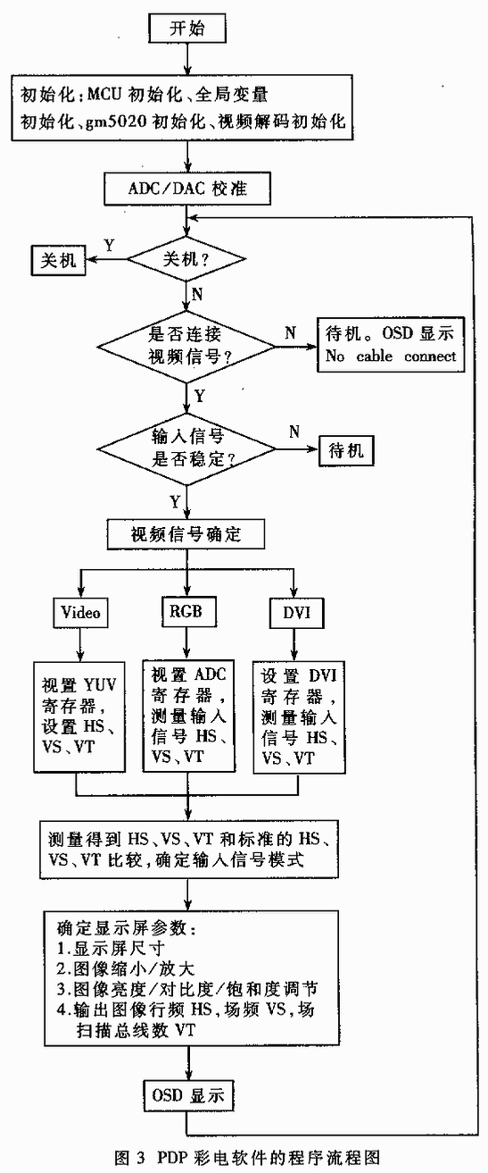 PDP平板显示系统中软件的程序流程图如图3所示。系统软件主要分为三大部分: